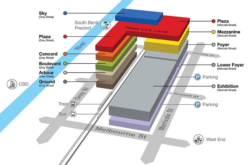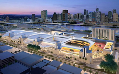 布里斯班会议展览中心(BCEC),它位于布里斯班南部墨尔本街道,旁边有格莱内尔格街。该中心是由南岸公司和AEG管理奥格登,设计的考克斯来架构设计,是由人工Leighton承包商在1993三月开始拆除世界世博园来建造,建筑成本在1亿7000万美元,由主要资助昆士兰政府一个赌场许可证销售,其余的由政府直接资助。该中心于1995五月完成,并在六月启用,BCEC的设计被批准在2007。在2009年6月项目改造计划的建造预算问题导致的延迟后,并开始建设在2010年。该项目在2012年初完成,并在一月25日正式启用。它耗资1亿4000万美元,由昆士兰政府资助。展览中心扩大了将近总面积25000平方米,其中就包括400和600两个礼堂伴随的门厅空间。